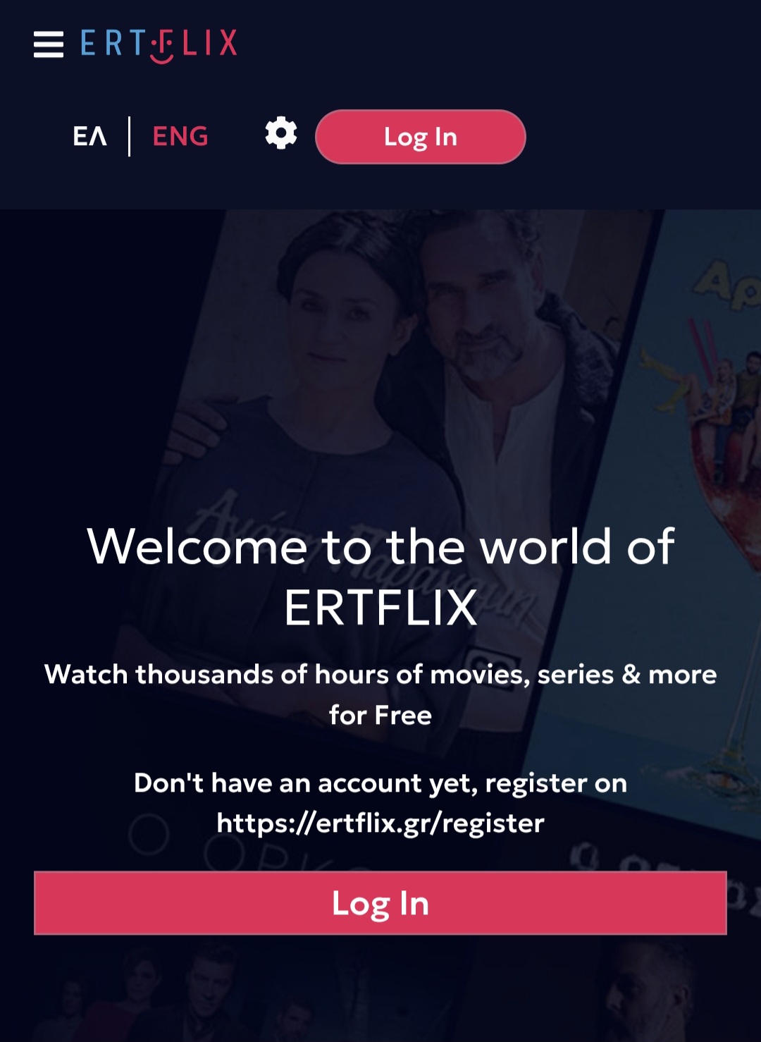 - Go to https://www.ertflix.gr/, refuse all cookies of course, and, if needed, switch to English using the "EN" link in the top left corner.